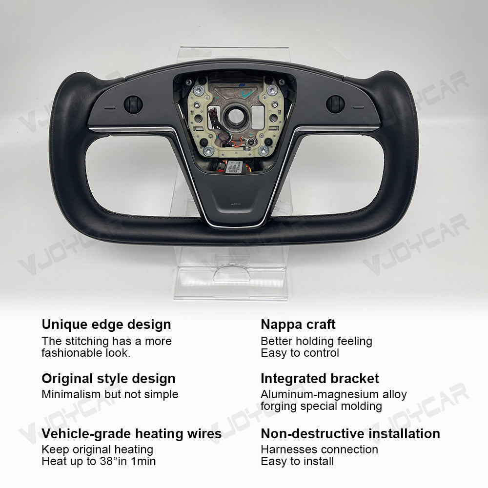 for Tesla Model X/S Yoke Steering Wheel, it Draws Inspiration from the Sleek and Sporty Design for Tesla New Model S Mode lX, with Pre-built in Heating Cable, Scroll Wheels Buttons and Cover all together. When Receive the Package, Just Replace Original Steering Wheel.