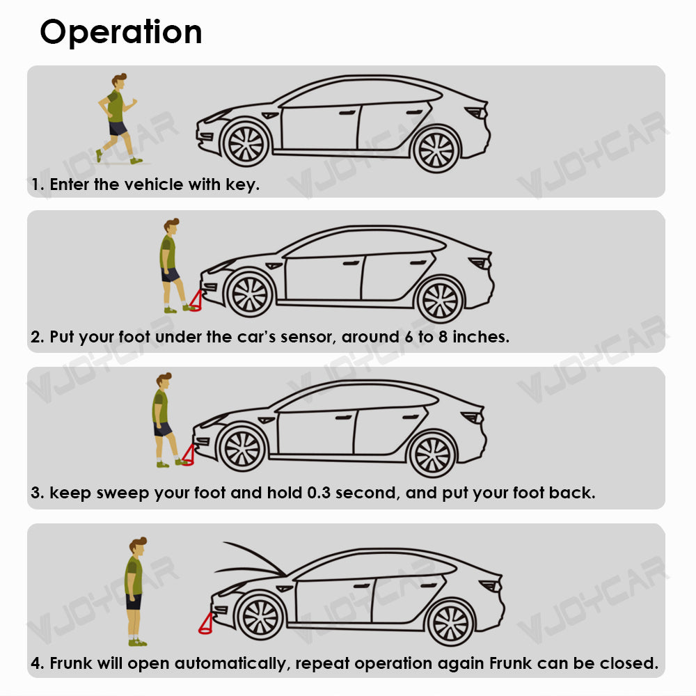 The auto feet kick sensor kits for Tesla 3 X Y S Vehicles Which has installed auto power frunk from VJOYCAR or others.