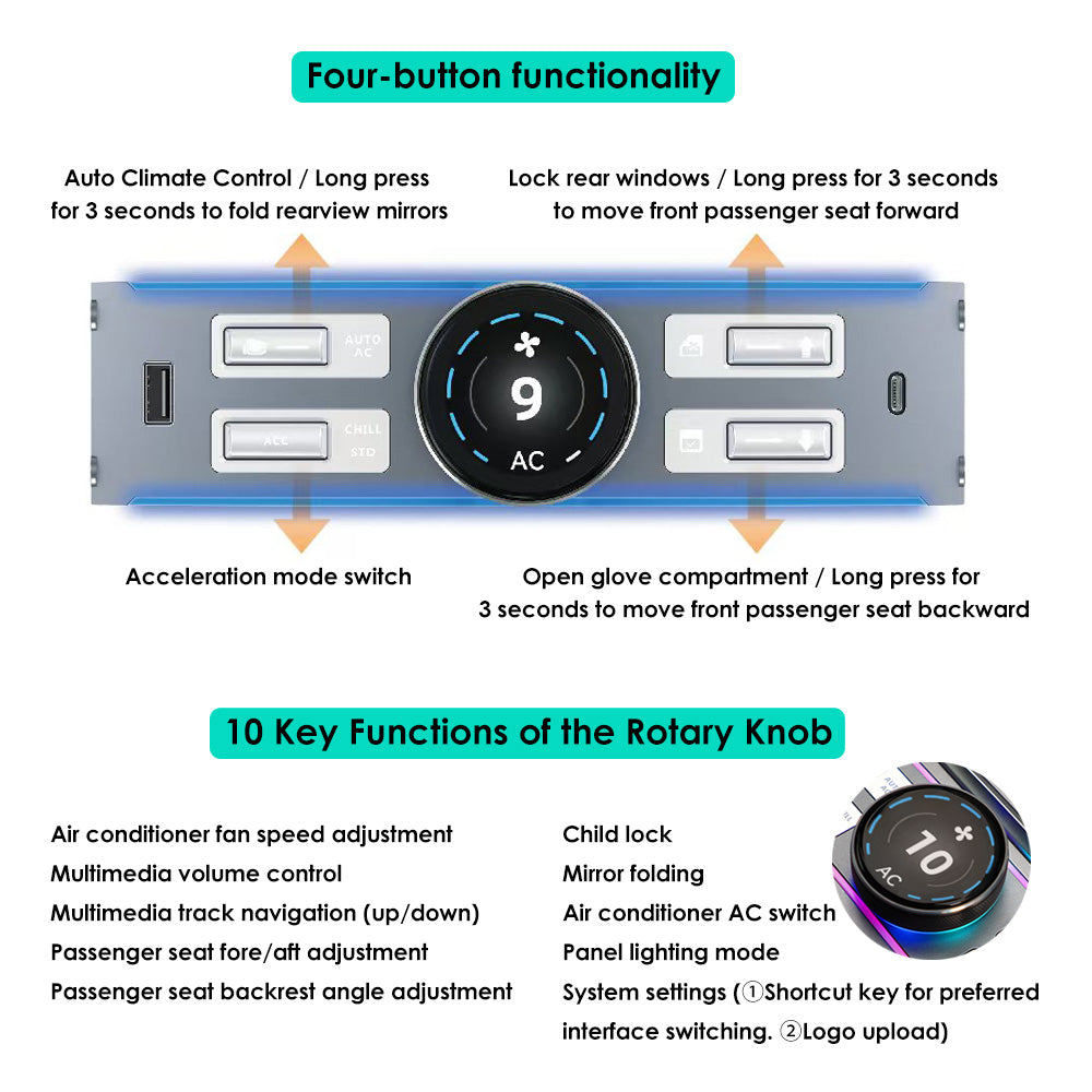 Esta es una base de control multifuncional inteligente para el modelo 3/Y/Highland de Tesla. Pantalla LCD HD y P Los botones físicos hacen que tu coche luzca más moderno y atractivo.