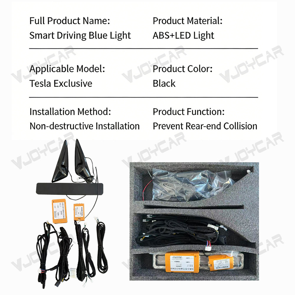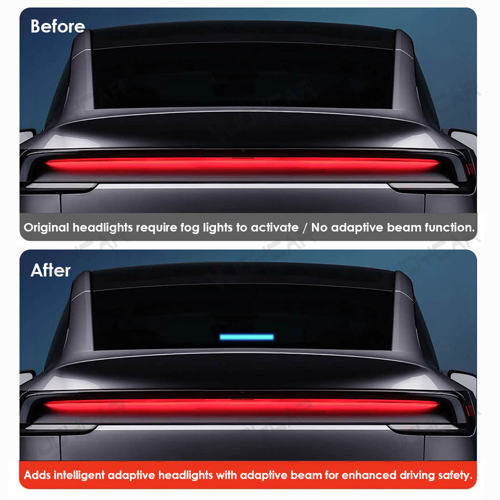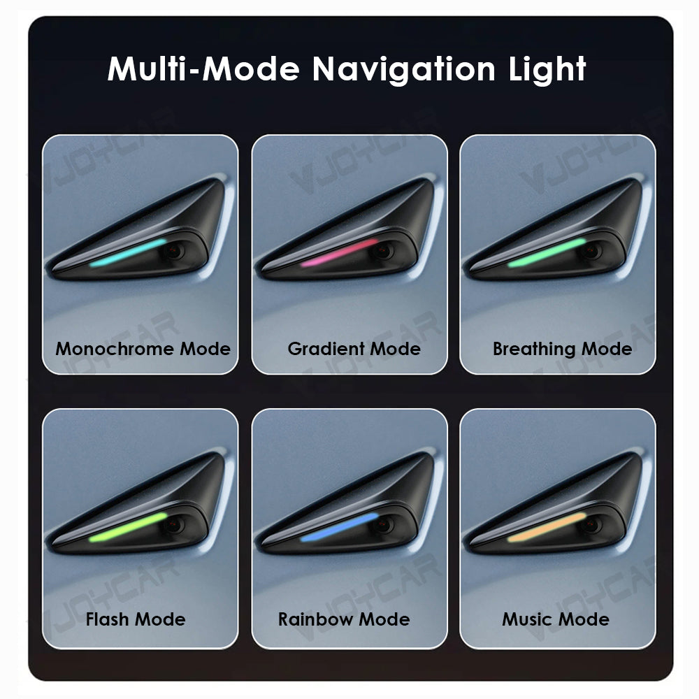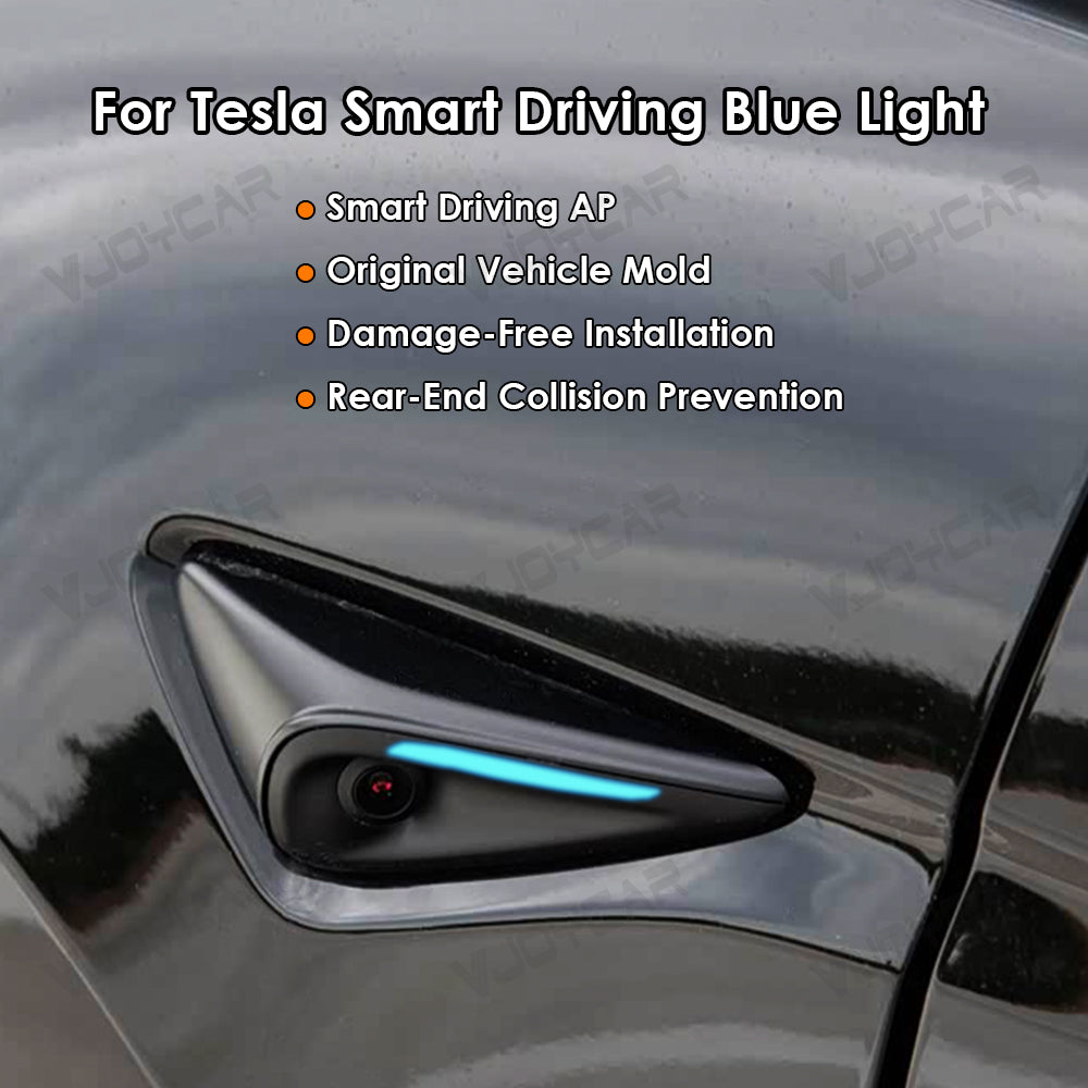 Smart Blue Light for Tesla Model 3 Highland 2023+ and Model Y Juniper 2025+, when Tesla is under Full Self-Driving FSD mode or Enhanced Autopilot Driving AP model, the two sides camera indicator light and back windshield light will be on.