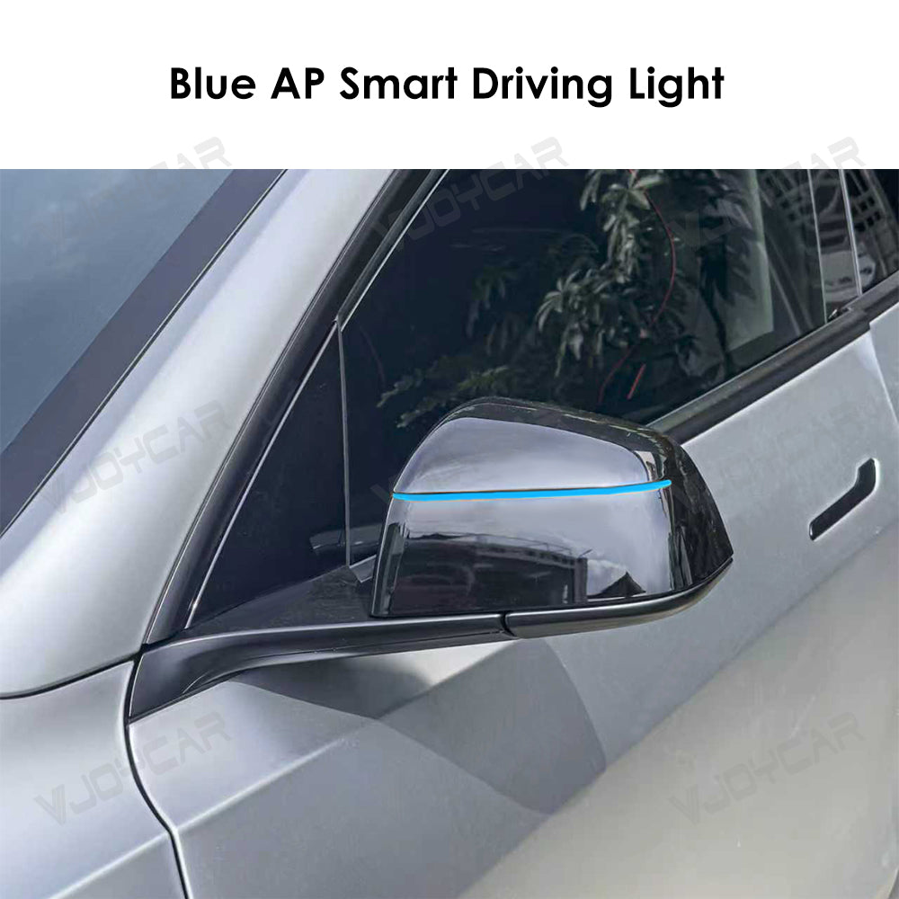 Automatically detects Tesla Full Self-Driving (FSD) and Enhanced Autopilot (AP) modes. Blue lights on both side mirrors turn on to indicate the autonomous driving status in real time.