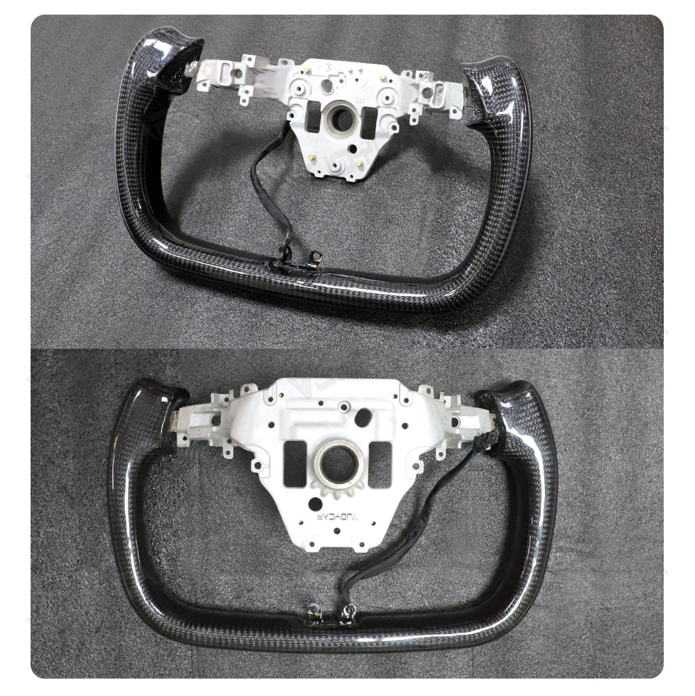 6. We are factory direct sales, support customized steering wheel, we are professional in processing carbon fiber steering wheel, tell us what you want, we can make it for you as similar as possible. Custom style parts include carbon color/material/sewing line color/alignment marks color/shape design, etc.