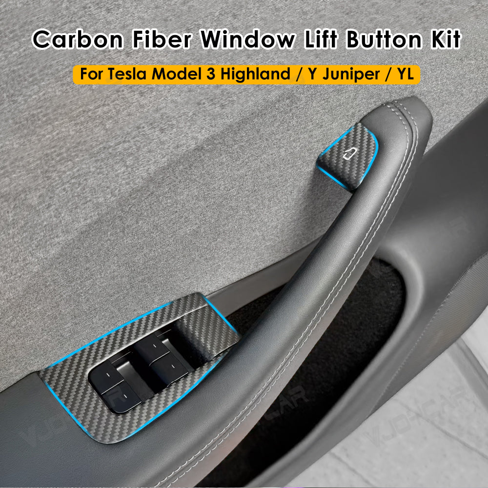 Design for Tesla Model YL Y Juniper 3 Highland Door Window Lift Button Trim Switch Cover 3K 240G Real Dry Carbon Fiber Accessories 10pcs, Enhances the aesthetic appeal of your Tesla together with durability and functionality.
