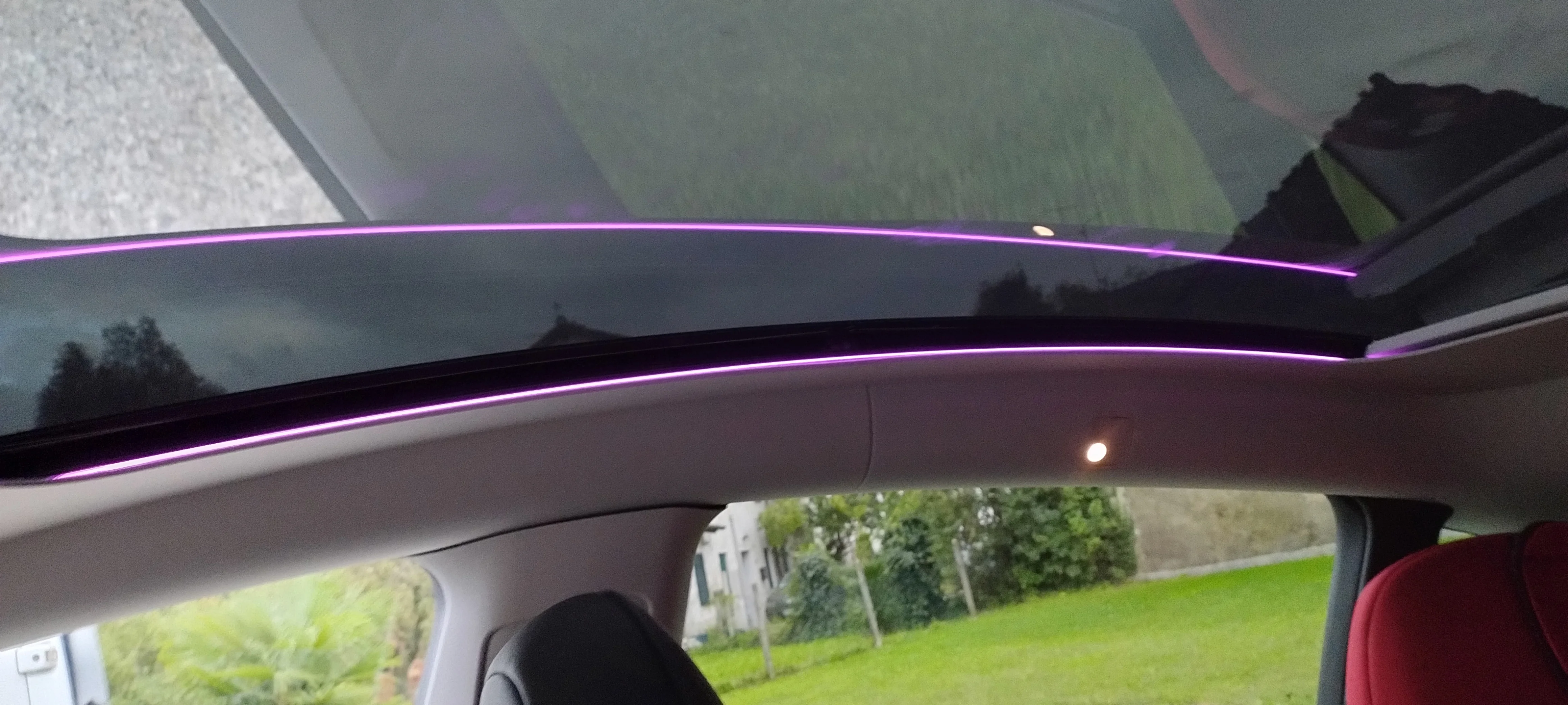 2025+ New Tesla Model Y Juniper Auto Electric Sunshade Retractable Glass Roof Block UV Keep Cooling, Button + English / Korean Voice Control + Ambient Light, one of the Most Popular Upgrade Accessories among all Tesla Upgrades. Be Ready for Summer.