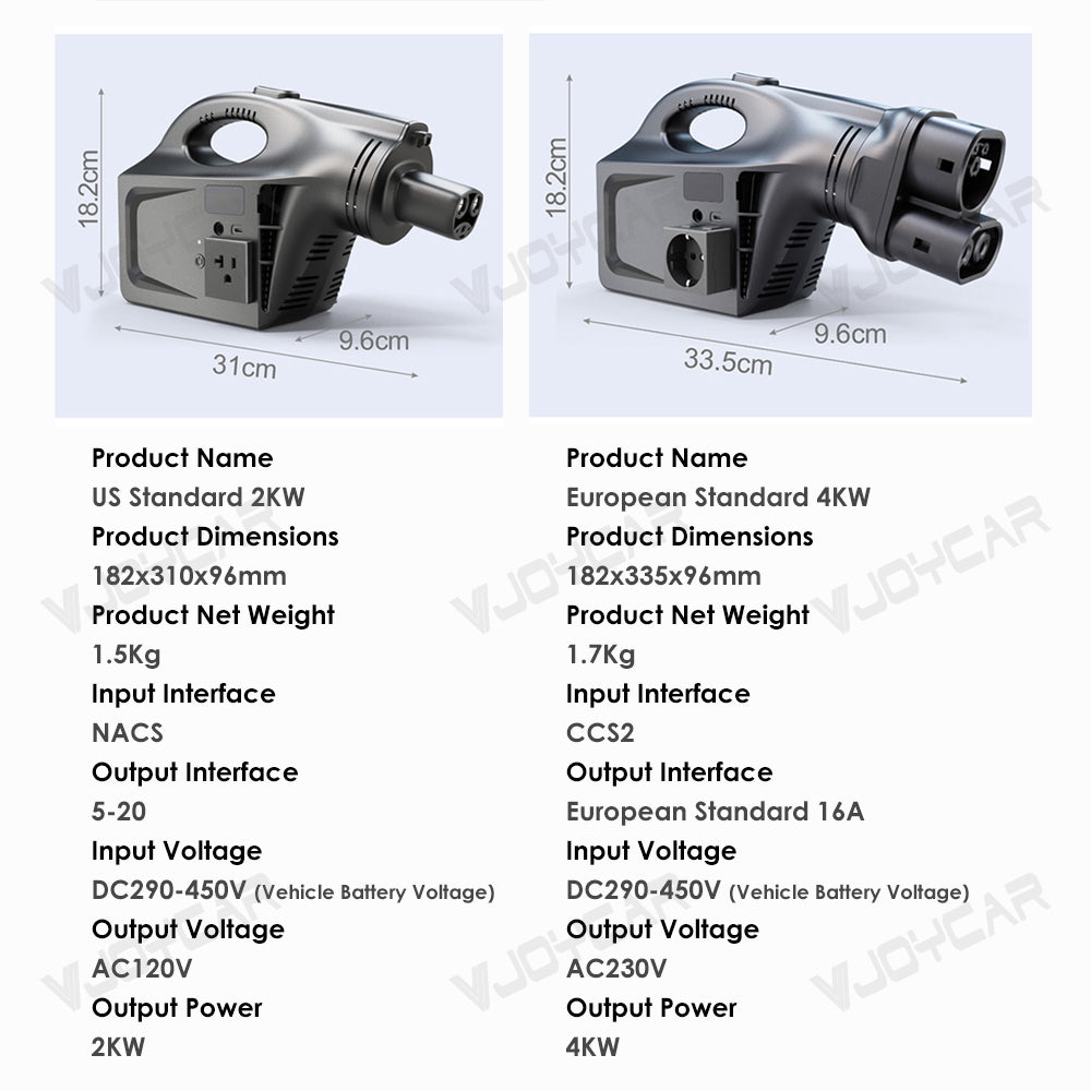 1. Design for Tesla vehicles(excluding Cybertruck) with CCS2 (CCS2 Functionality) and NACS (NACS Functionality); The Discharge Device V2L also can work for Audi, for Hyundai, and others which provide the vehicle's battery voltage within the 290–450V range and support the CCS2 charging protocol.