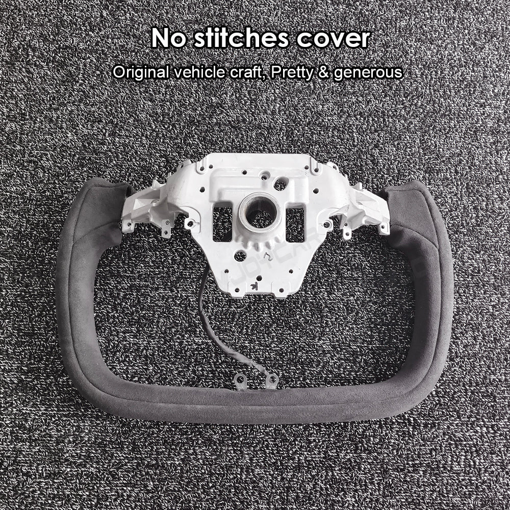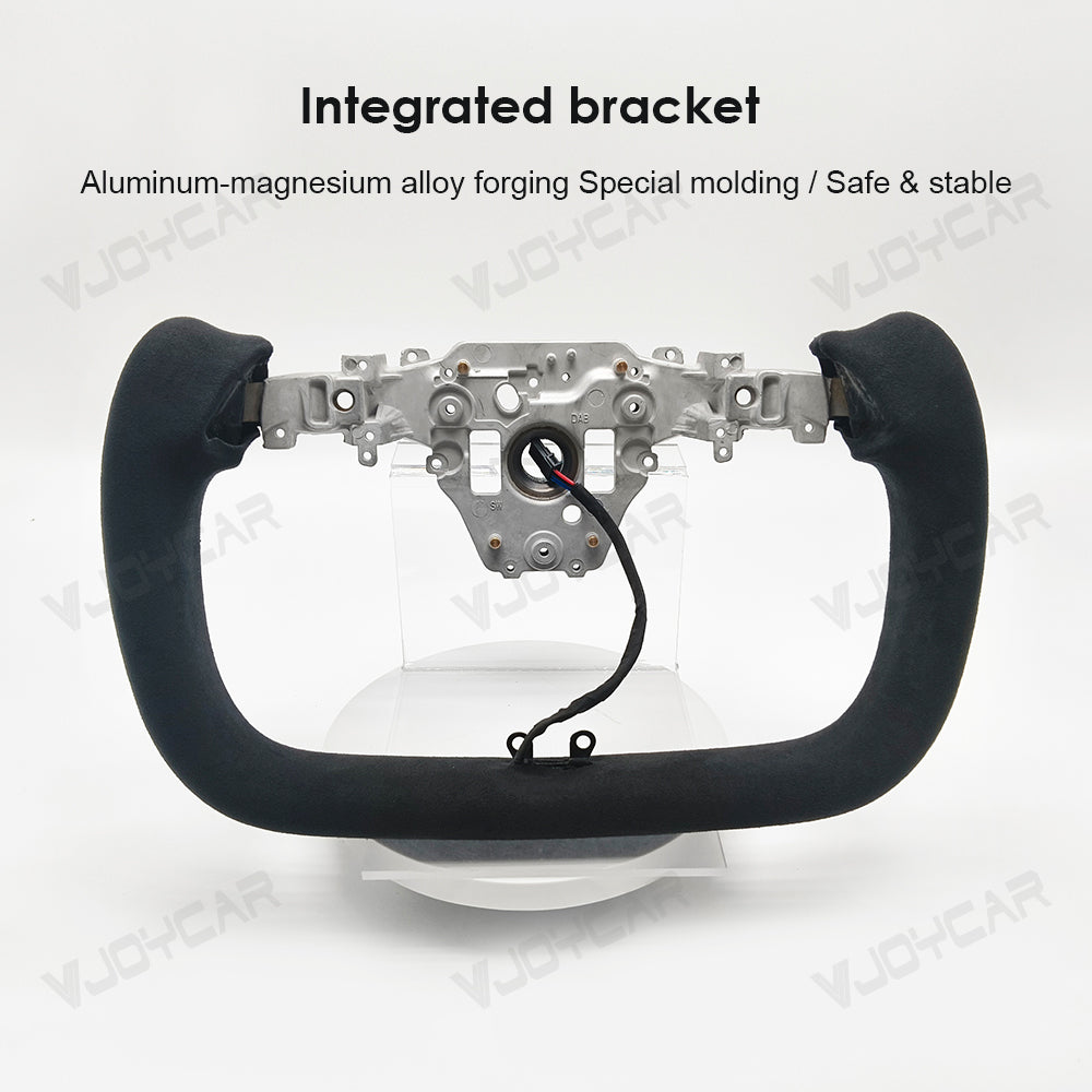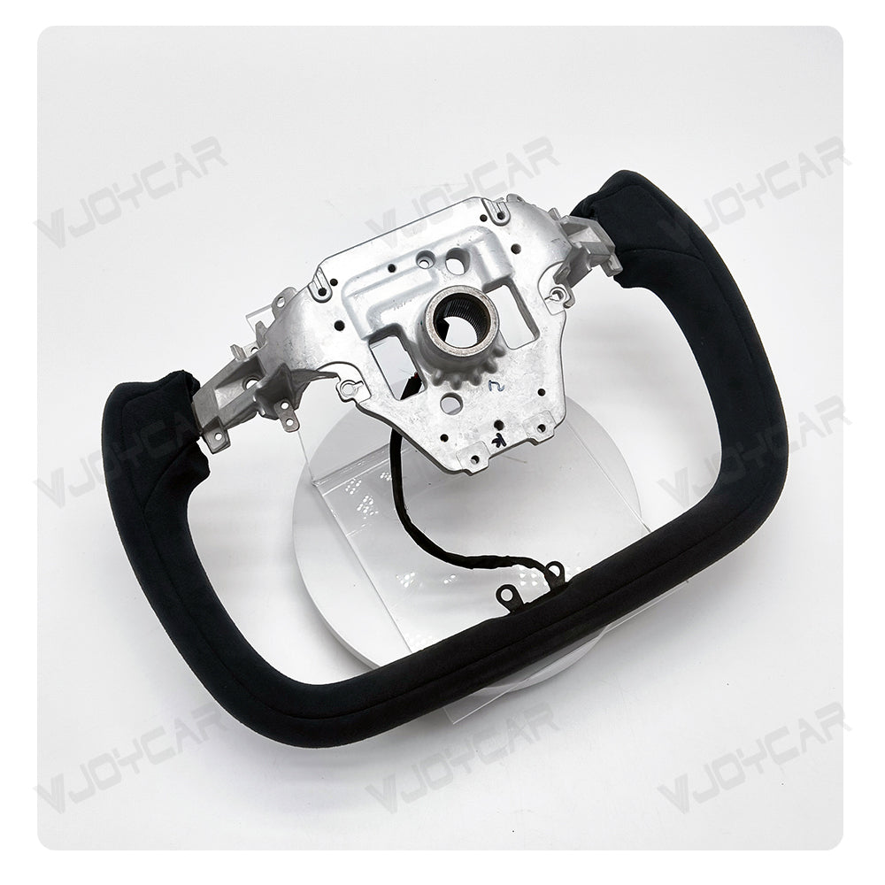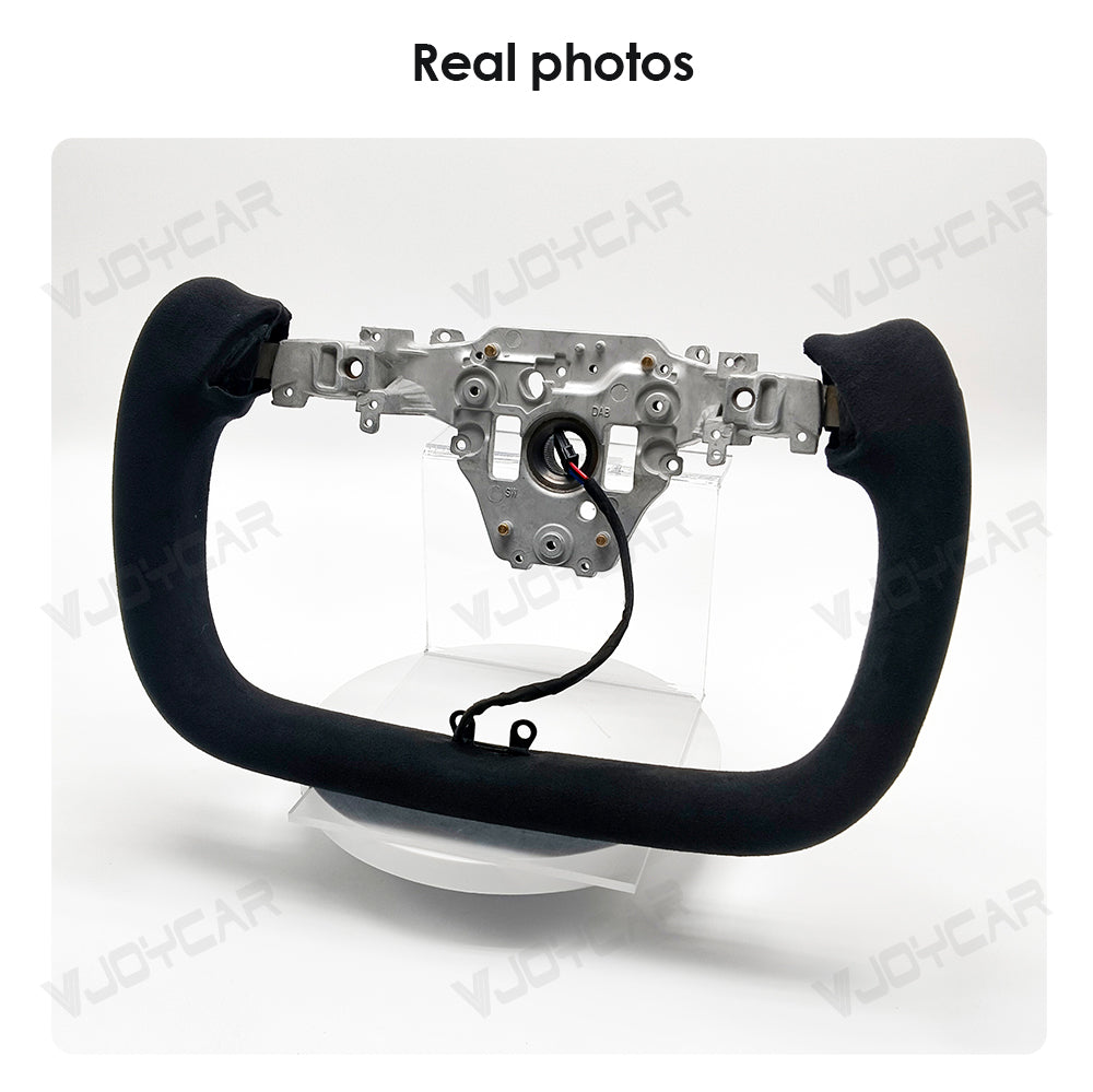 Custom Italy Alcantara Yoke Steering Wheel for Tesla Model Y Juniper 2025+ with Heating Cable 350mm diameter. Inspired by the yoke-style steering wheels of the Model X and Model S Plaid. The Ellipse shape design has a sense of sports vision as a whole to improve the vision of the road and to elevate your driving pleasure.