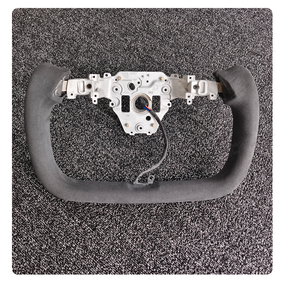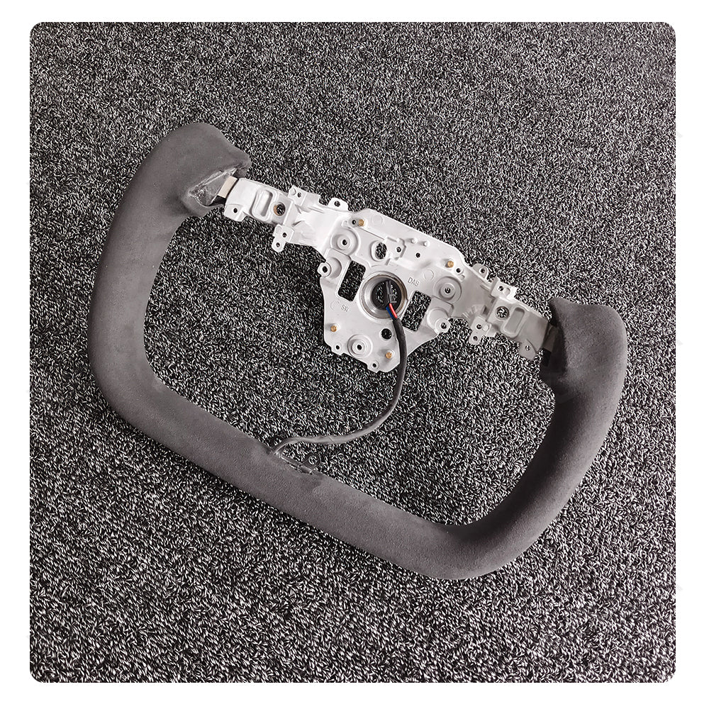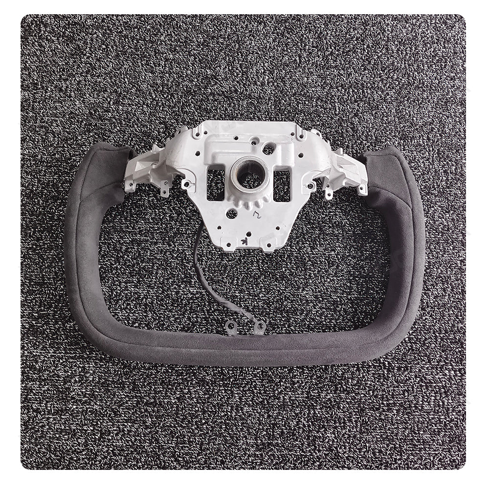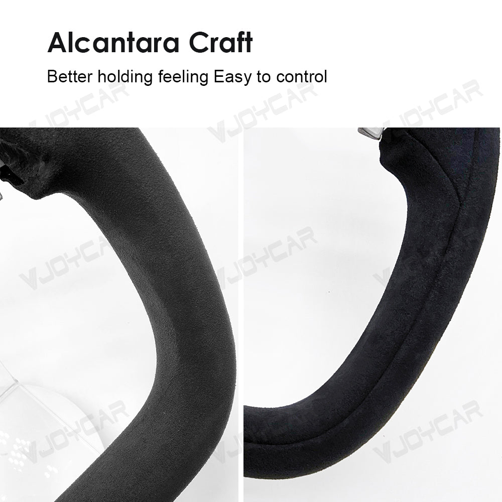 Custom Italy Alcantara Yoke Steering Wheel for Tesla Model Y Juniper 2025+ with Heating Cable 350mm diameter. Inspired by the yoke-style steering wheels of the Model X and Model S Plaid. The Ellipse shape design has a sense of sports vision as a whole to improve the vision of the road and to elevate your driving pleasure.